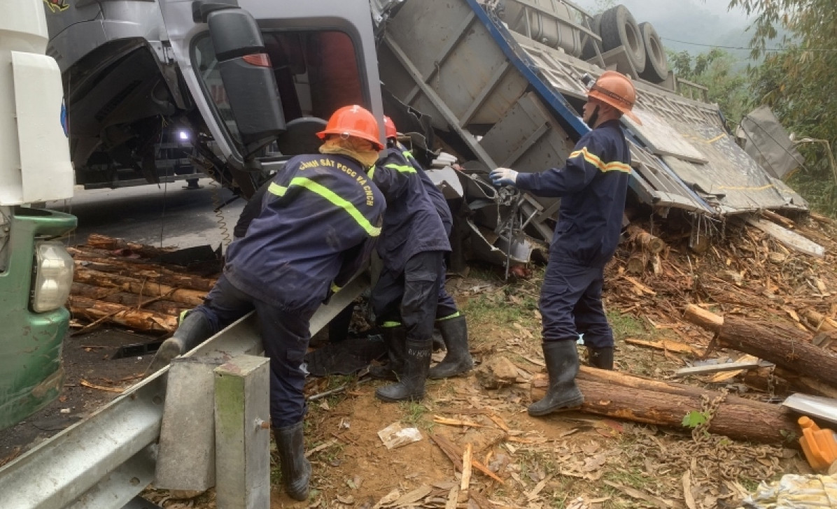 Thời điểm này, trong cabin xe tải có 3 người, trong đó 2 nạn nhân tử vong, 1 người bị thương, phương tiện hư hỏng nặng.
