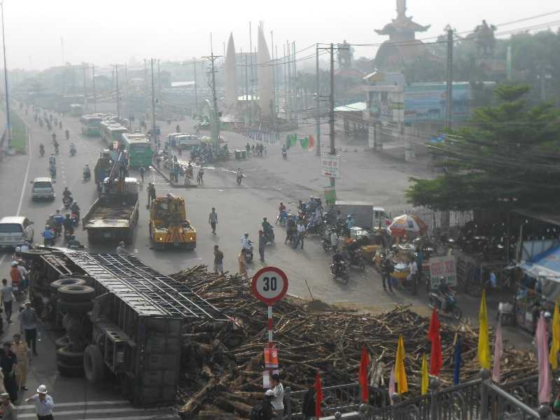 Thông tin ban đầu, vào thời điểm trên, xe tải nặng BKS 63L - 6882 do tài xế Nguyễn Thành Tâm (24 tuổi, ngụ ở Tây Ninh) điều khiển chở hơn 10 tấn cây gỗ, lưu thông theo hướng từ TP.HCM đi Đồng Nai.