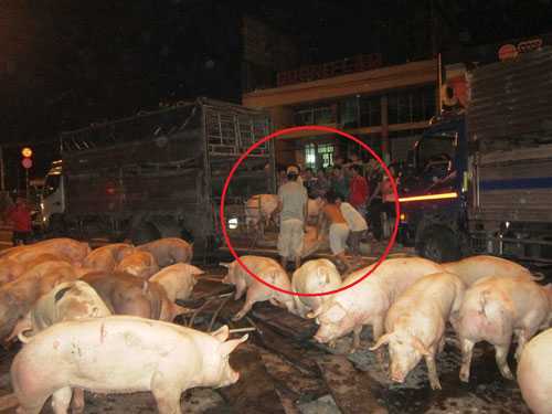 Quá bất ngờ, tài xế Tuấn hãm phanh, đánh lái sang trái để tránh gây tai nạn. Hậu quả, chiếc xe mất lái đâm mạnh vào dải phân cách, tiếp tục chao đảo lao sang phần đường ngược lại rồi nằm lật ngửa trên quốc lộ. 54 con heo bị hất văng xuống đường, chạy tán loạn.