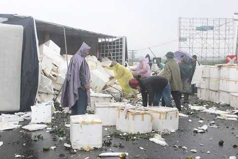 » Hàng trăm thùng cá chất đầy quốc lộ 1A