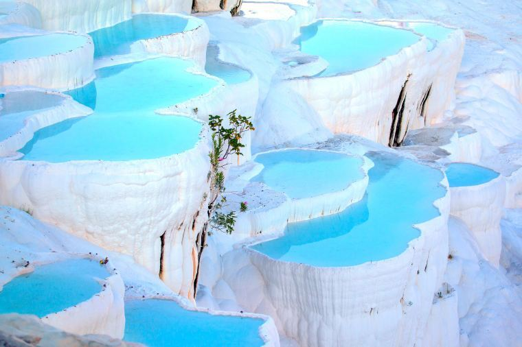 Thêm vào đó, những dòng suối nóng ngầm chảy qua, đọng giữa những lớp đá vôi thành các hồ nước nhỏ xanh ngắt, mực nước chỉ hơn nửa mét. Từ đó cũng hình thành 17 suối nước nóng nhiệt độ 35 – 100 độ C có tác dụng hỗ trợ chữa nhiều loại bệnh khác nhau như huyết áp cao, bệnh tim, thấp khớp, rối loạn thần kinh, bệnh tiêu hóa, bệnh về mắt, bệnh ngoài da và các rối loạn dinh dưỡng. Khi tới đây bạn được tùy ý lựa chọn vùng nhiệt độ thích hợp để ngâm mình tận hưởng.