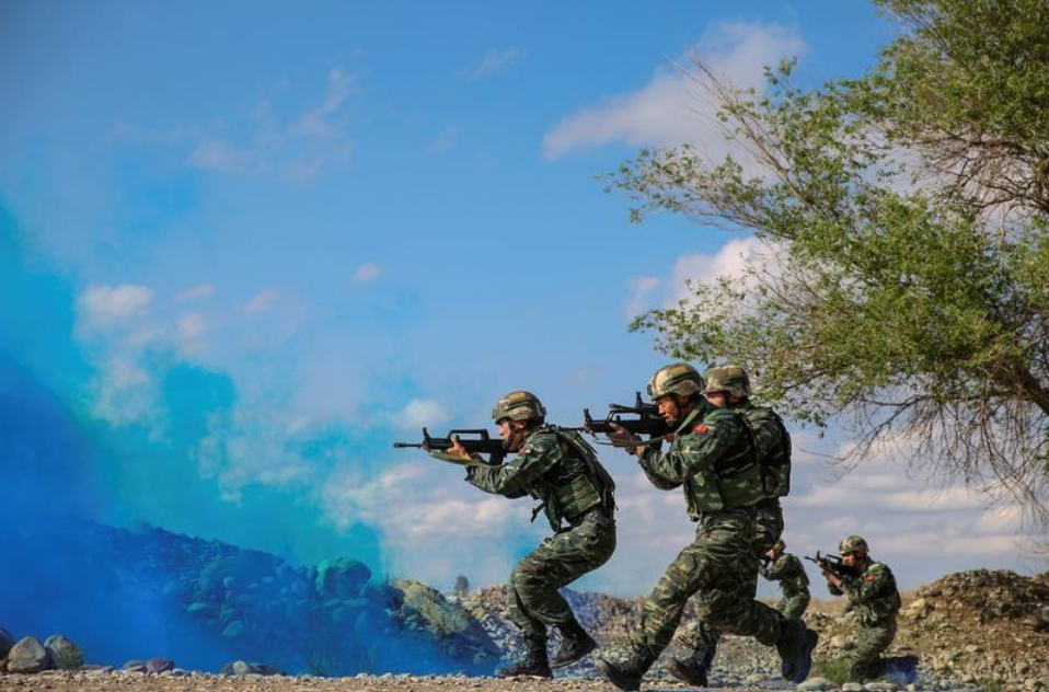 Quân đội Giải phóng nhân dân Trung Quốc huấn luyện tại sa mạc Gobi. (Ảnh: Reuters)