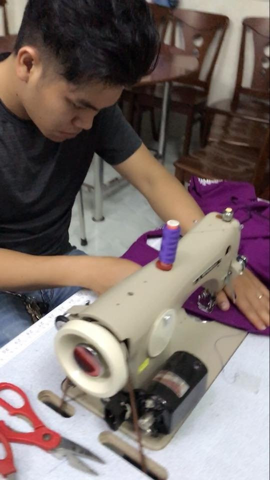 Hình ảnh Trung Kiên cẩn thận ngồi may lại áo dài cho Lê Phương khiến nhiều người ngưỡng mộ