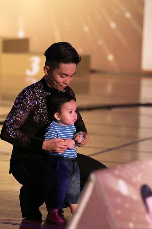 Anh còn giành thời gian chăm con trai để Khánh Thi hoàn thành phần biểu diễn. Hình ảnh này của Phan Hiển khiến ai cũng phải cảm động