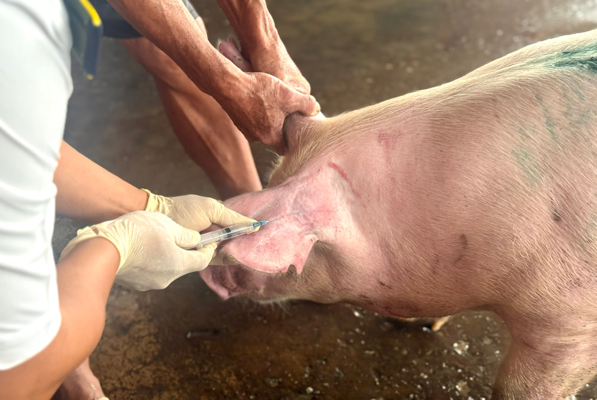 Thời điểm đoàn kiểm tra đang có 11 con heo của Công ty C.P. Việt Nam được nuôi nhốt tại đây. Đoàn đã thực hiện lấy mẫu máu 5 con heo để gửi đi xét nghiệm kiểm tra dịch bệnh.