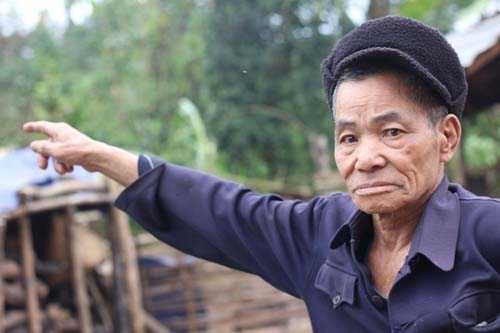 | Ông Chang Gô Chừ chỉ phía cánh rừng, nơi mẹ và con gái ông bị hổ giết hại |