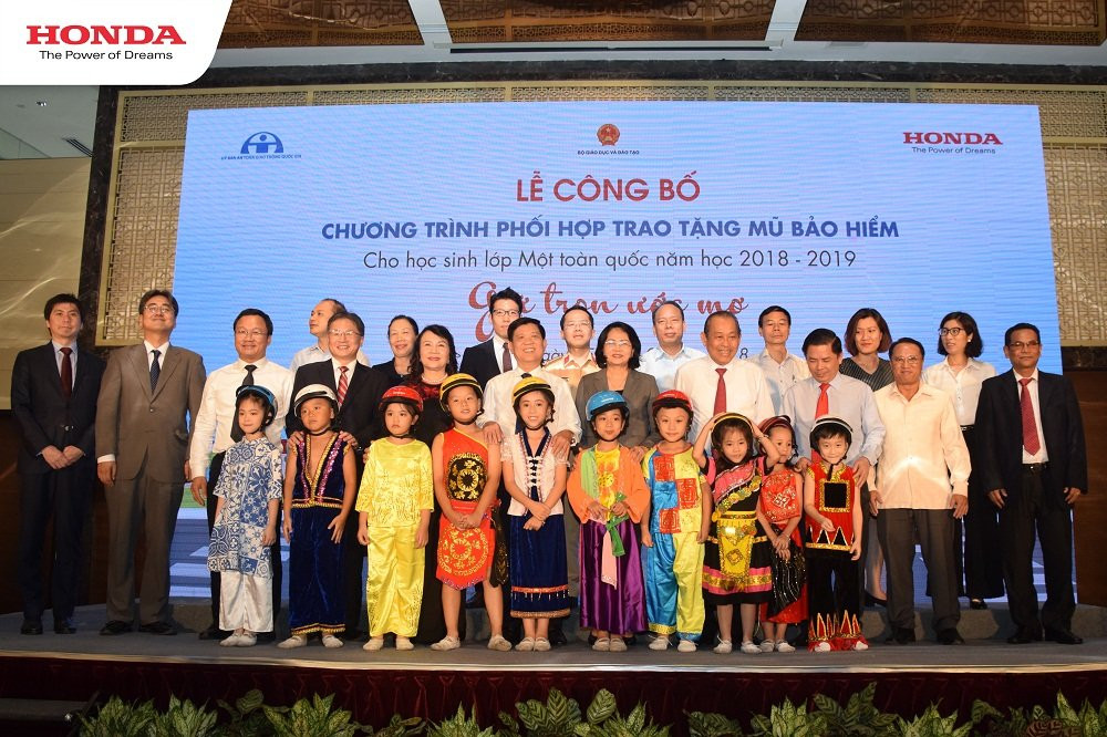 Nhận thức được vấn đề cấp bách cũng như để hưởng ứng lời kêu gọi của Ủy ban ATGT QG, Công ty Honda Việt Nam chính thức triển khai chương trình trao tặng đồng loạt mũ bảo hiểm cho tất cả các em học sinh bước vào lớp Một năm học 2018-2019 trên cả nước, nhằm góp phần gia tăng tỷ lệ trẻ đội mũ bảo hiểm đạt chuẩn khi ngồi sau xe mô tô, xe gắn máy và xe đạp điện, từ đó tác động đến nhận thức phụ huynh học sinh và cộng đồng nói chung về việc đội mũ bảo hiểm cho con em mình khi tham gia giao thông.