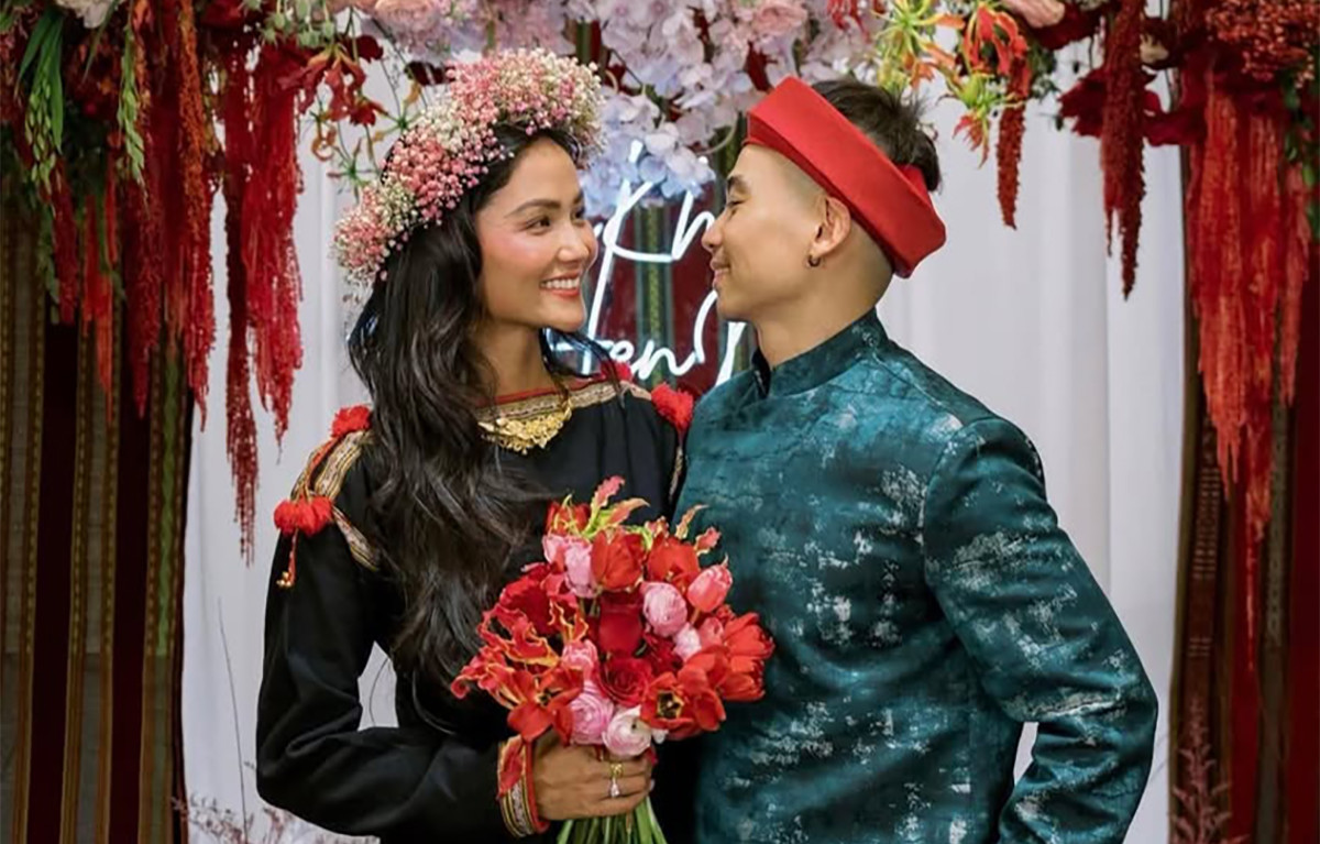 Hoa hậu H'Hen Niê vừa chia sẻ hình ảnh lễ cưới ấm cúng với ông xã Tuấn Khôi tại quê nhà Đắk Lắk.