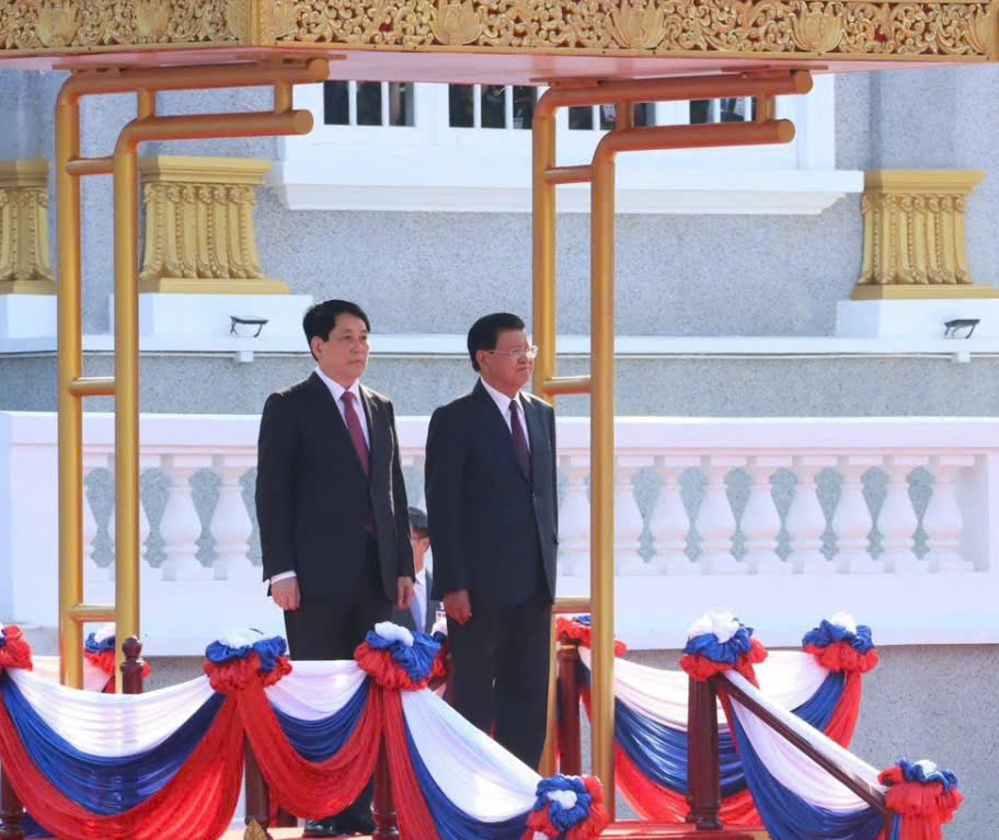 Tổng Bí thư, Chủ tịch nước Lào Thongloun Sisoulith chủ trì lễ đón chính thức Chủ tịch nước Lương Cường cùng Đoàn đại biểu cấp cao Việt Nam thăm cấp Nhà nước đến Cộng hòa Dân chủ Nhân dân Lào.
