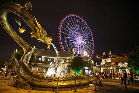 Không chỉ có lễ hội Hạt Ngọc Trời, đến với Asia Park đầu năm mới, du khách còn được dạo chơi trong không gian Châu Á lung linh kỳ ảo, rực rỡ sắc màu của hàng loạt tuyệt tác kiến trúc như Cổng Thành, Tháp Đồng hồ, Sun Wheel, Thuyền rồng, Tượng Phật…