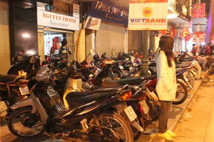 Từ hè phố, lề đường, ngõ hẻm… cả người già, trẻ em trong nhà đều được huy động để trông xe.