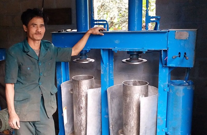 “Qua nghiên cứu tôi thấy có thể ứng dụng nguyên lý hoạt động của máy xe múc đất để chế tạo ra máy ép dầu thủy lực. Từ đó, tôi bắt đầu tìm tòi chế tạo máy, và sau hơn một năm với nhiều lần thất bại tôi mới chế thành công chiếc máy ép dầu phụng, dầu mè bằng công nghệ thủy lực được nông dân trồng đậu, mè trong vùng rất ưa chuộng bởi chỉ cần đổ lạc vào máy xay mịn để làm nhuyễn sản phẩm.