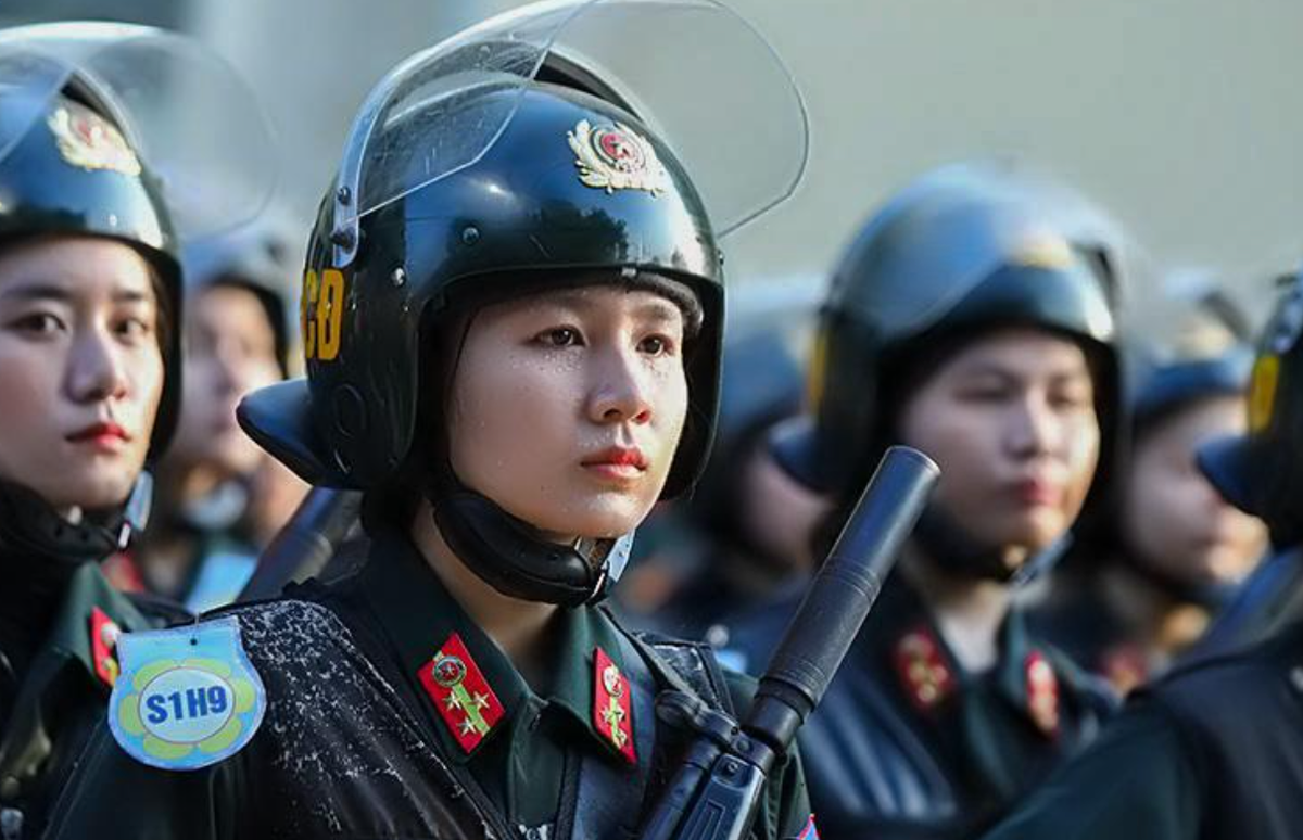 Chiến sĩ hợp luyện diễu binh kỷ niệm 50 năm Giải phóng miền Nam. (Ảnh: Minh Hoàng)