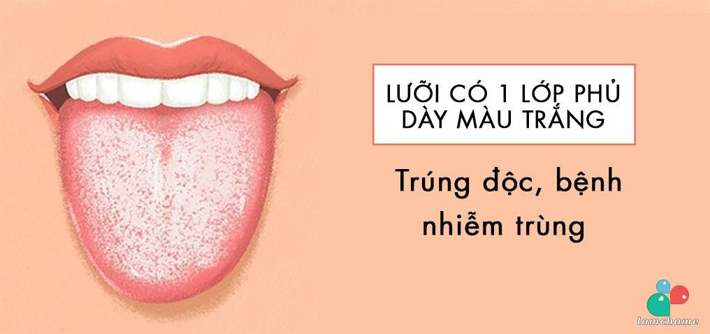 Màu của lớp phủ trên lưỡi (màu mảng bám lưỡi) có thể khác với màu của lưỡi. Một lớp phủ mỏng màu trắng, có thể dễ dàng trôi đi sau khi đánh răng được coi là bình thường. Nhưng nếu lớp phủ này biến đổi màu hoặc dày lên thì có lẽ bạn cần đi kiểm tra sức khỏe càng sớm càng tốt. Lớp phủ càng dày chứng tỏ sức khỏe càng bị đe dọa nghiêm trọng đó.