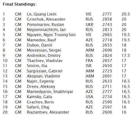 | Xếp hạng chung cuộc giải cờ chớp vô địch thế giới |