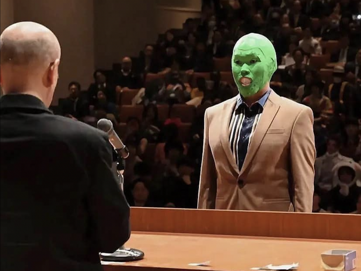 Dị nhân mặt xanh bước lên sân khấu nhận bằng tốt nghiệp trước sự thích thú của mọi người (Ảnh: Boredpanda)