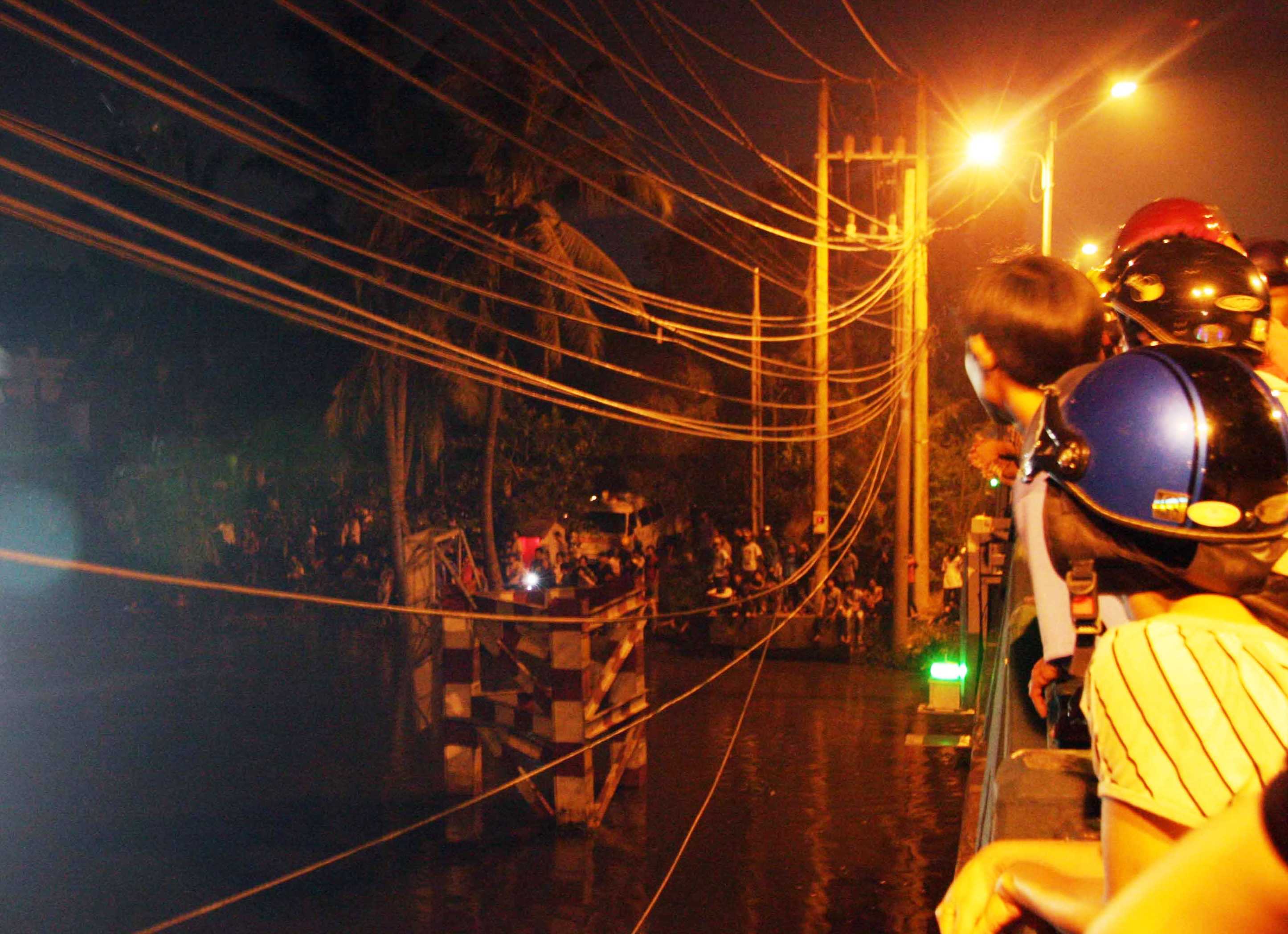 Đến 23h30' ngày 27/10, hàng trăm người vẫn đang nỗ lực lặn tìm thi thể nam thanh niên bị mất tích do nhảy cầu Xáng (đường Trưng Nữ Vương, ranh giới giữa huyện Hóc Môn và huyện Củ Chi, TP. HCM) tự tử.