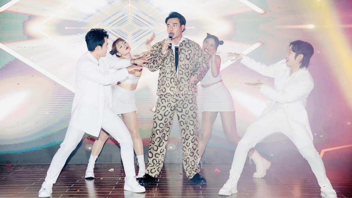 Lê Dương Bảo Lâm xuất hiện trên sân khấu chuyên nghiệp cùng vũ đoàn.