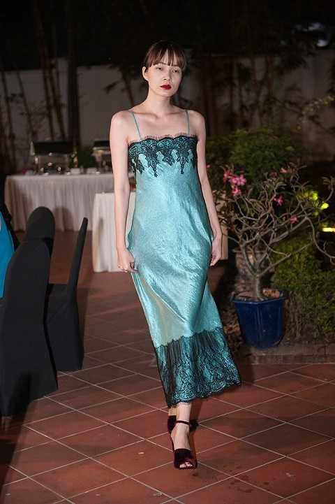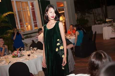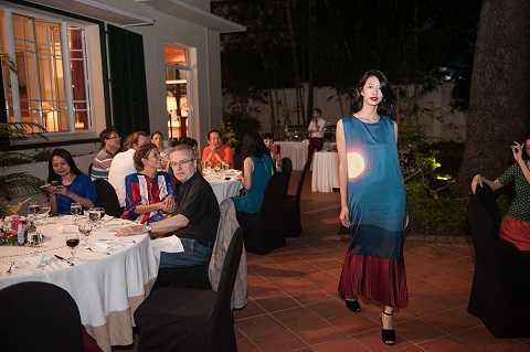Đêm trình diễn diễn ra trong không khí thân mật, đầm ấm nhưng vẫn đậm không khí thời trang. Người mẫu ngoài việc sải bước còn tạo dáng trên ghế hay các bối cảnh không gian đậm chất Pháp của biệt thự, mang đến sự ấn tượng cho giới mộ điệu.