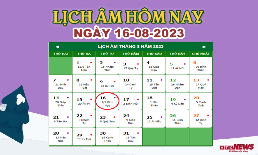 Xem lịch âm hôm nay ngày 16/8/2023.