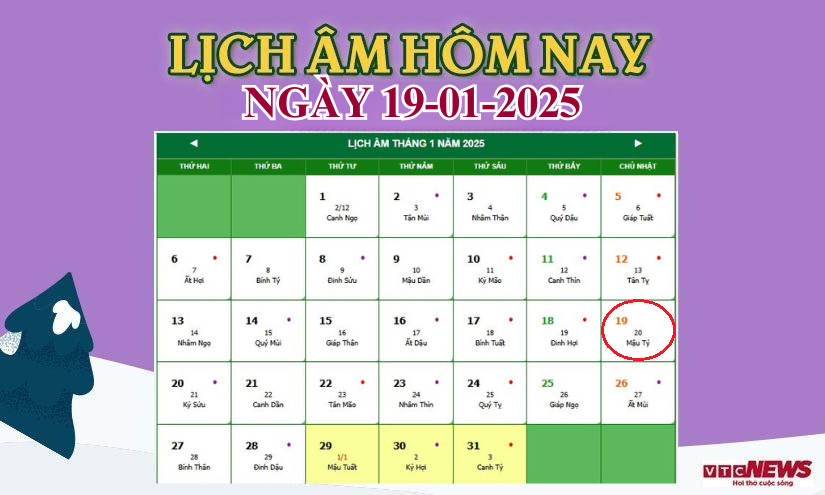 Xem lịch âm hôm nay ngày 19/1/2025.