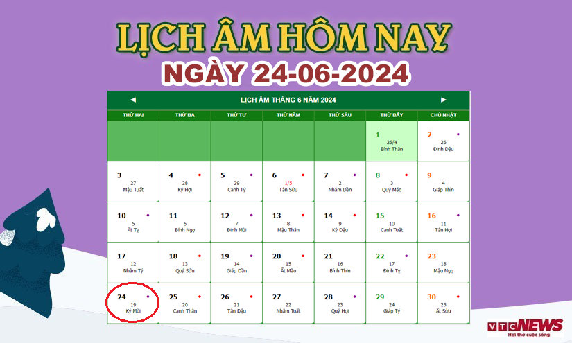 Xem lịch âm hôm nay ngày 24/6/2024.