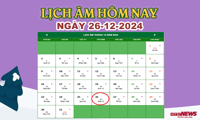 Xem lịch âm hôm nay ngày 26/12/2024.
