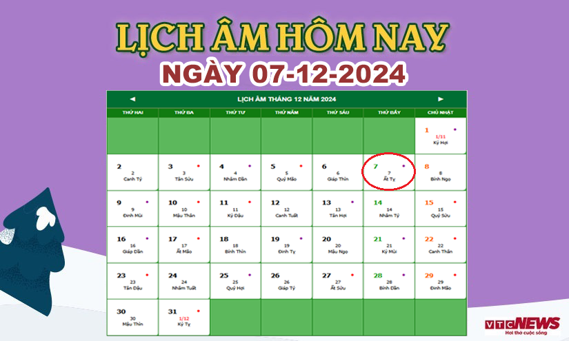 Thông tin chung về lịch âm hôm nay ngày 7/12/2024