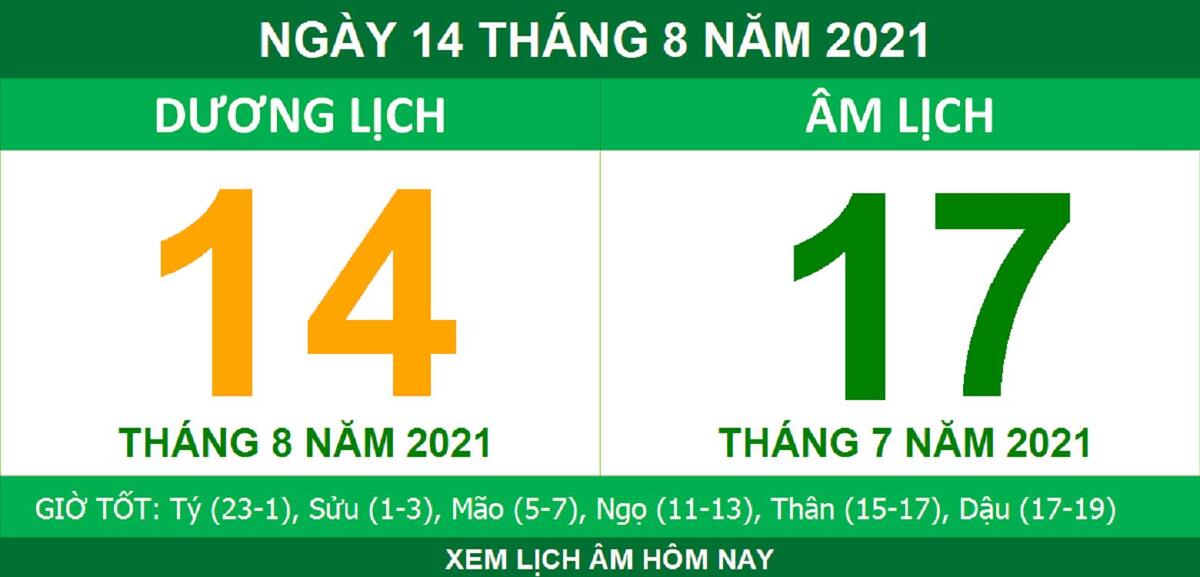 Lịch âm hôm nay là ngày mấy? Dương lịch hôm nay là 14/8/2022, tương ứng với lịch âm là ngày 17/7.