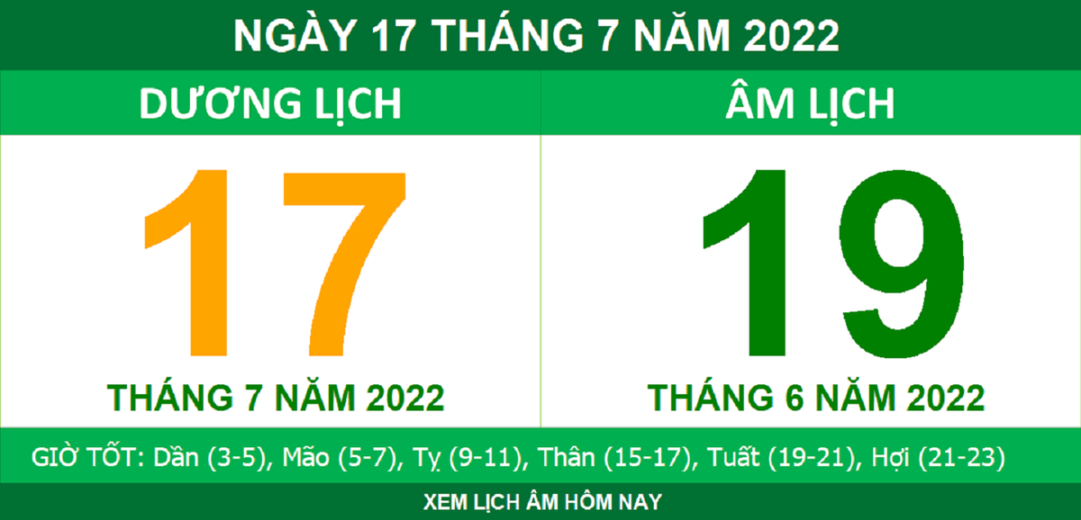 Lịch âm hôm nay là ngày mấy? Dương lịch hôm nay là 17/7/2022, tương ứng với lịch âm là ngày 19/6.