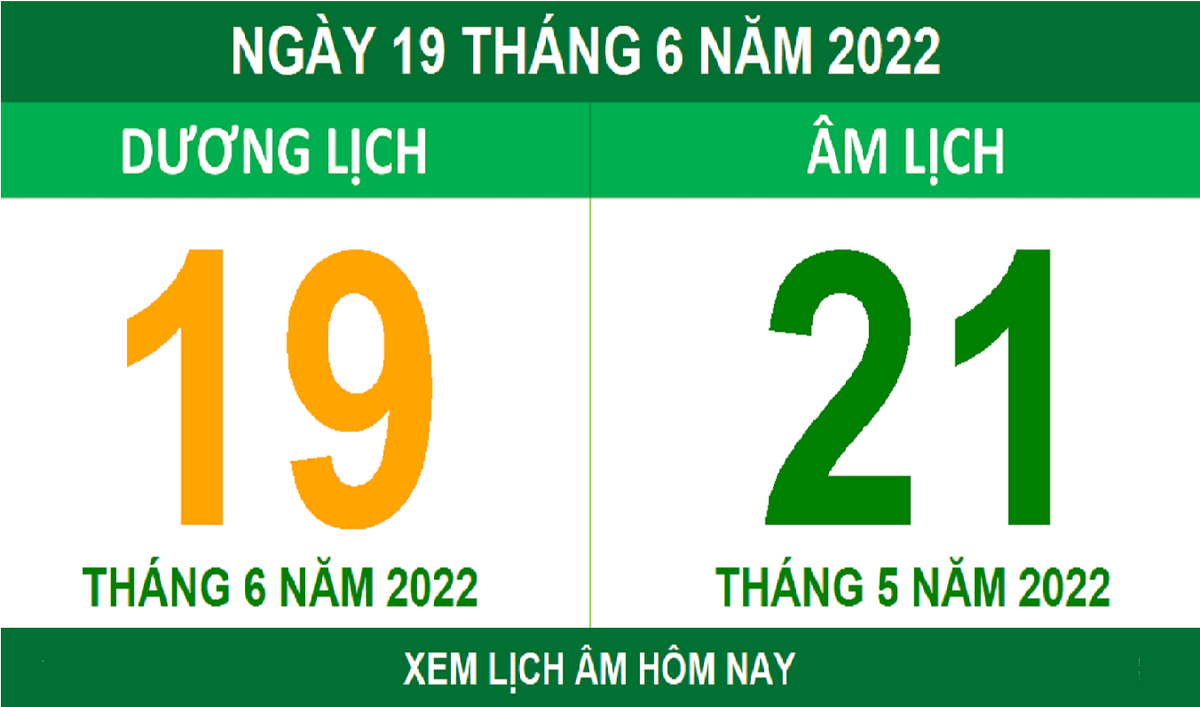 Lịch âm hôm nay là ngày mấy? Dương lịch hôm nay là 19/6/2022, tương ứng với lịch âm là ngày 21/5.