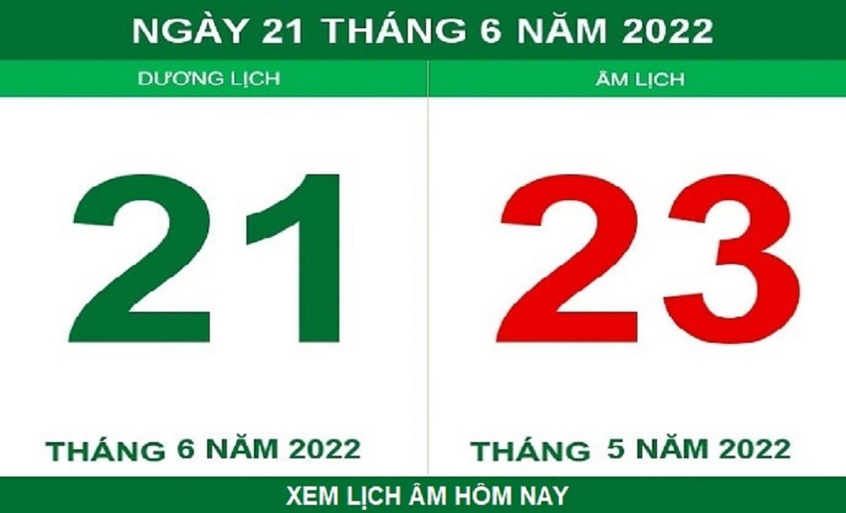 Lịch âm hôm nay là ngày mấy? Dương lịch hôm nay là 21/6/2022, tương ứng với lịch âm là ngày 23/5.