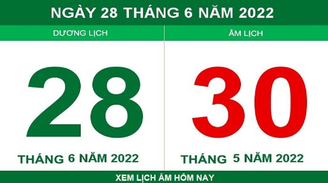 Lịch âm hôm nay là ngày mấy? Dương lịch hôm nay là 28/6/2022, tương ứng với lịch âm là ngày 30/5.
