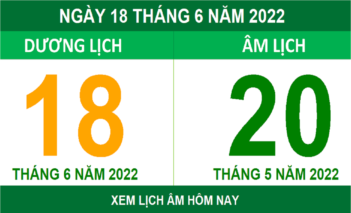 Lịch âm hôm nay là ngày mấy? Dương lịch hôm nay là 18/6/2022, tương ứng với lịch âm là ngày 20/5.