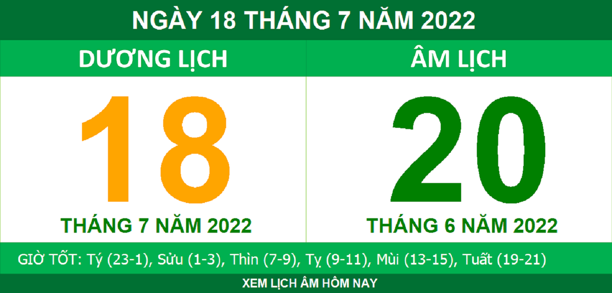 Lịch âm hôm nay là ngày mấy? Dương lịch hôm nay là 18/7/2022, tương ứng với lịch âm là ngày 20/6.