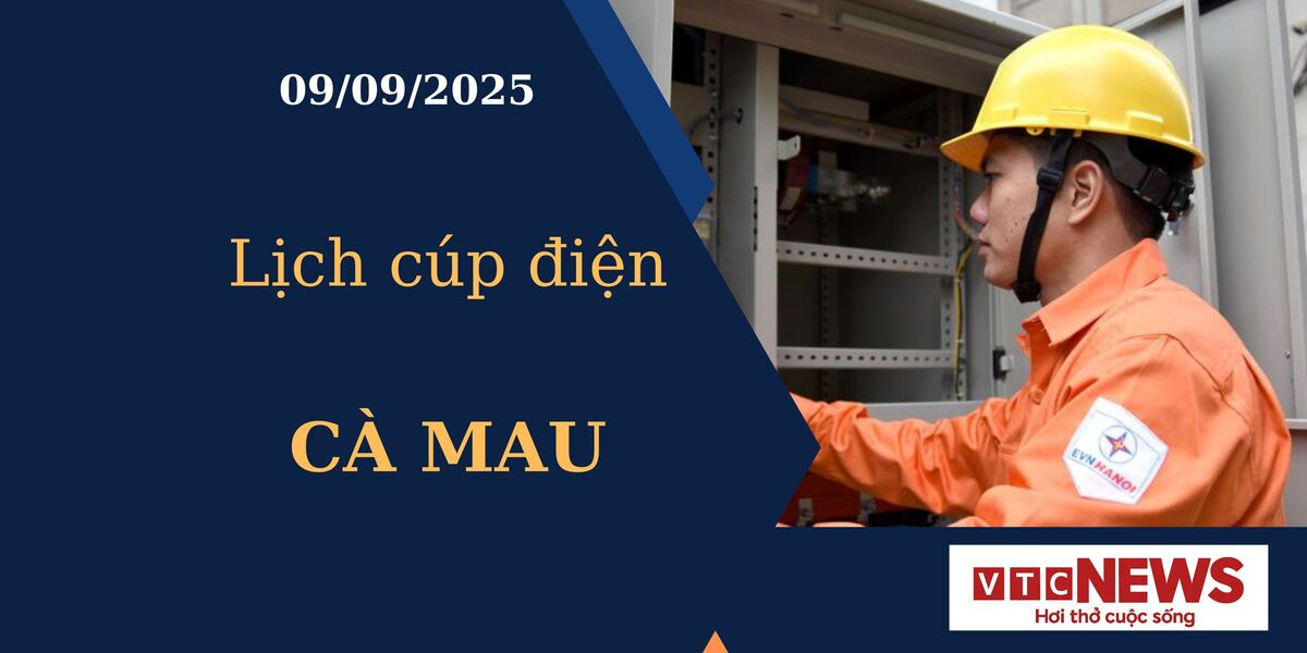 Báo Điện tử VTC News cập nhật mới nhất lịch mất điện, cúp điện các khu vực tại Cà Mau ngày 09/09/2025 từ website cổng thông tin Điện lực miền Nam.