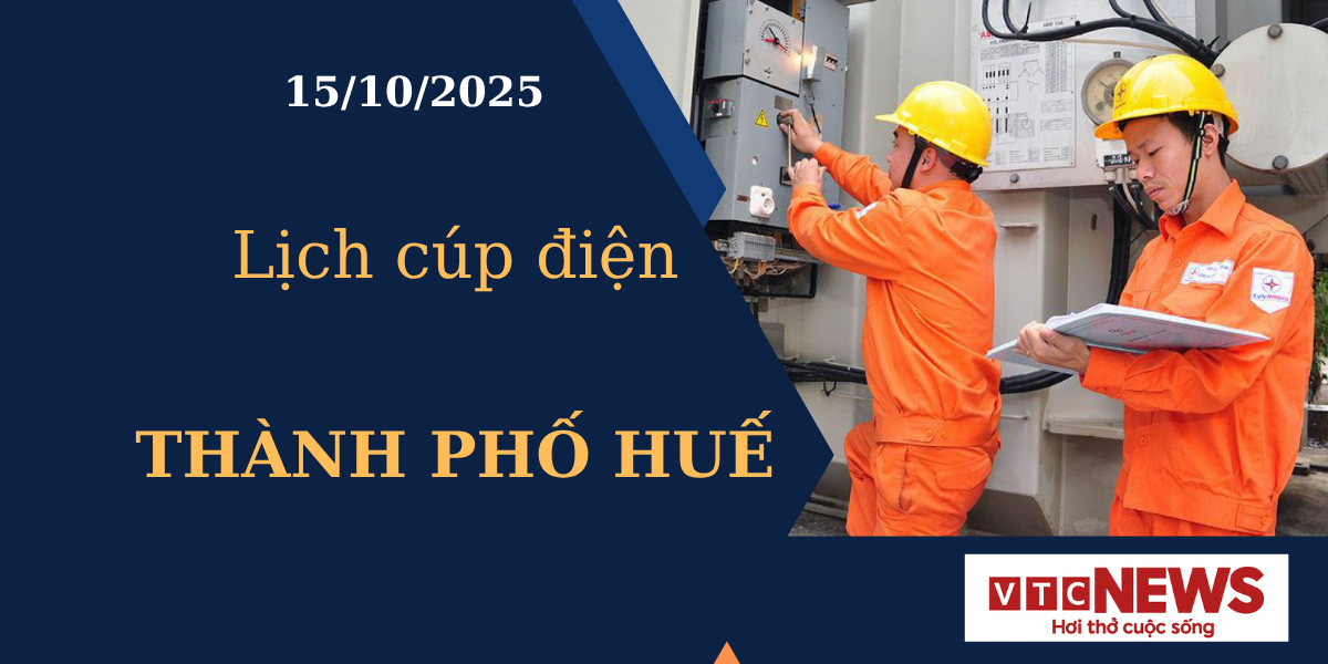 Báo Điện tử VTC News cập nhật mới nhất lịch mất điện, cúp điện các khu vực tại Thành phố Huế ngày 15/10/2025 từ website cổng thông tin Điện lực miền Trung.