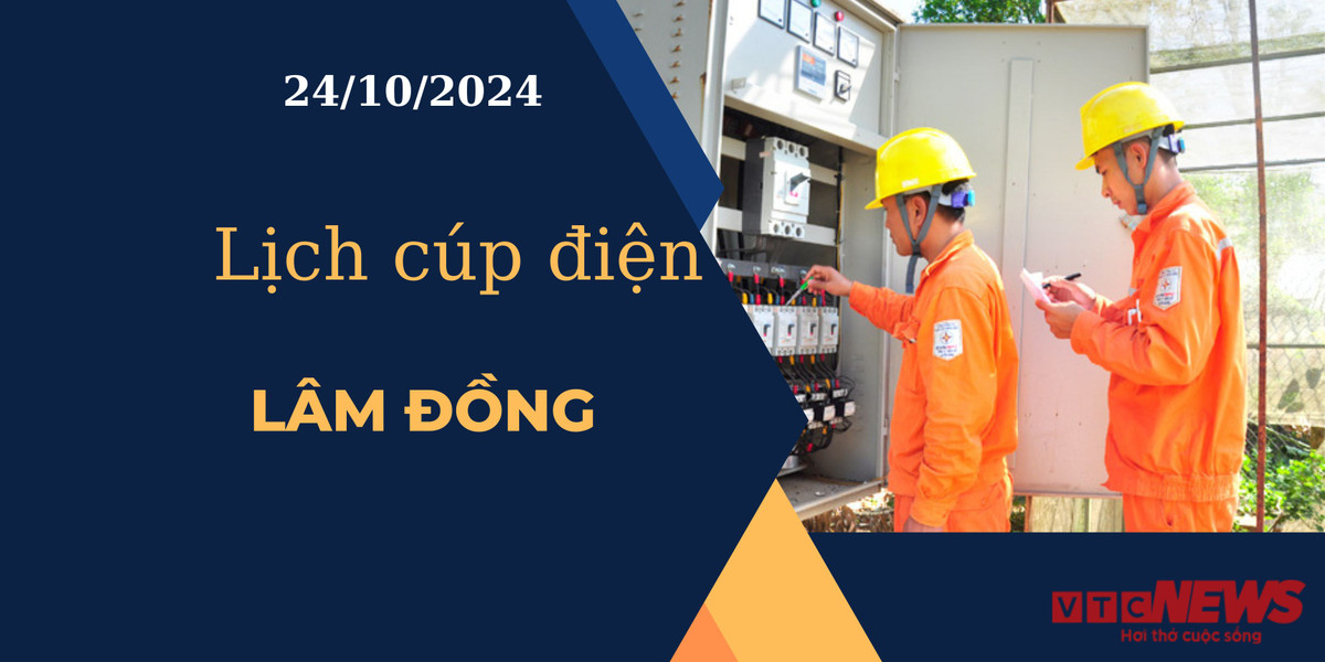 VTC News cập nhật mới nhất lịch mất điện, cúp điện các khu vực tại Lâm Đồng ngày 24/10/2024 từ website cổng thông tin Điện lực miền Nam.