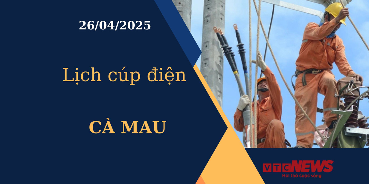 Báo Điện tử VTC News cập nhật mới nhất lịch mất điện, cúp điện các khu vực tại Cà Mau ngày 26/04/2025 từ website cổng thông tin Điện lực miền Nam.