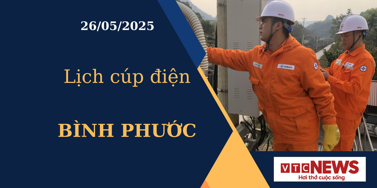 Báo Điện tử VTC News cập nhật mới nhất lịch mất điện, cúp điện các khu vực tại Bình Phước ngày 26/05/2025 từ website cổng thông tin Điện lực miền Nam.
