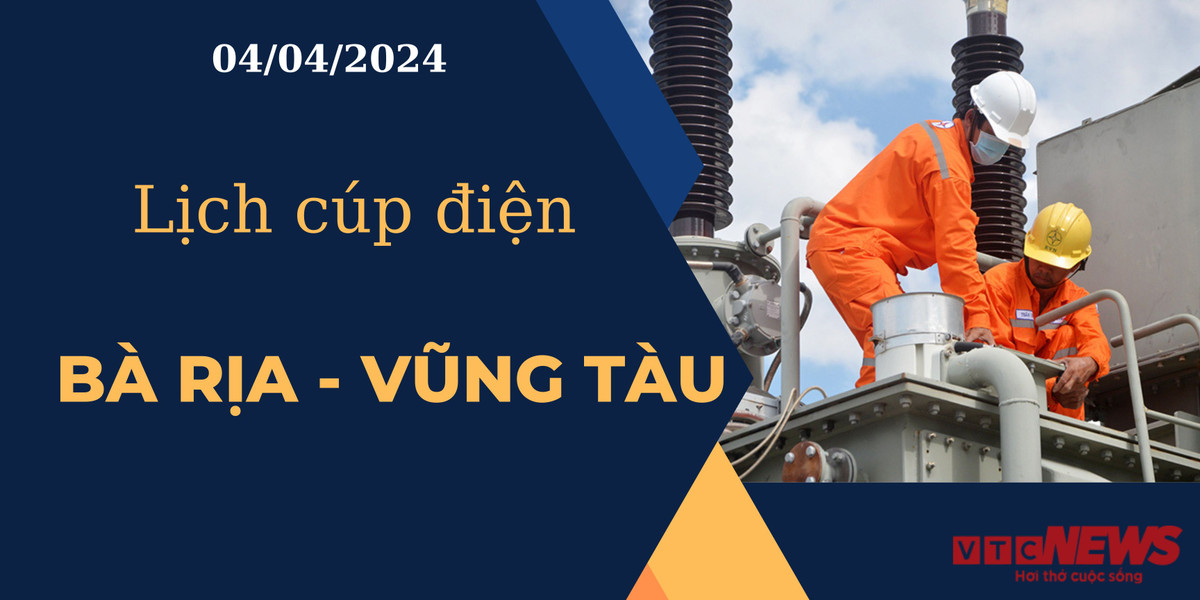 VTC News cập nhật mới nhất lịch mất điện, cúp điện các khu vực tại Bà Rịa - Vũng Tàu ngày 04/04/2024 từ website cổng thông tin Điện lực miền Nam.