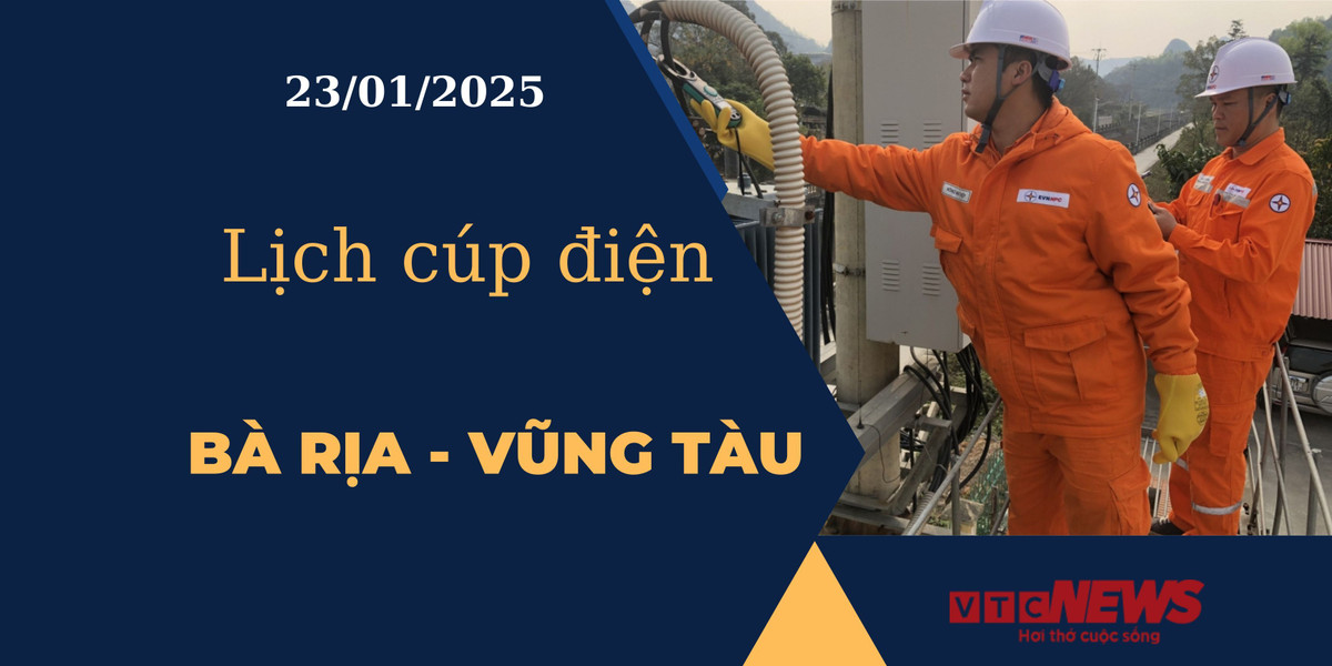 VTC News cập nhật mới nhất lịch mất điện, cúp điện các khu vực tại Bà Rịa - Vũng Tàu ngày 23/01/2025 từ website cổng thông tin Điện lực miền Nam.