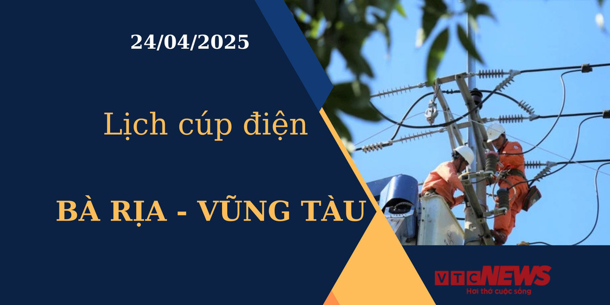 Báo Điện tử VTC News cập nhật mới nhất lịch mất điện, cúp điện các khu vực tại Bà Rịa - Vũng Tàu ngày 24/04/2025 từ website cổng thông tin Điện lực miền Nam.