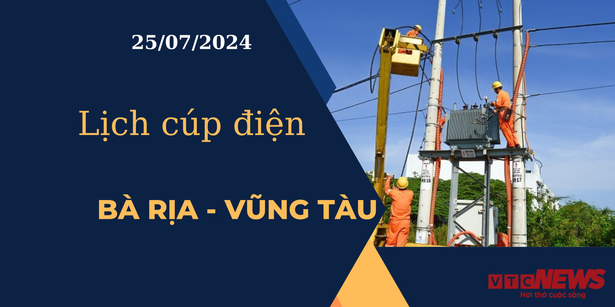 VTC News cập nhật mới nhất lịch mất điện, cúp điện các khu vực tại Bà Rịa - Vũng Tàu ngày 25/07/2024 từ website cổng thông tin Điện lực miền Nam.