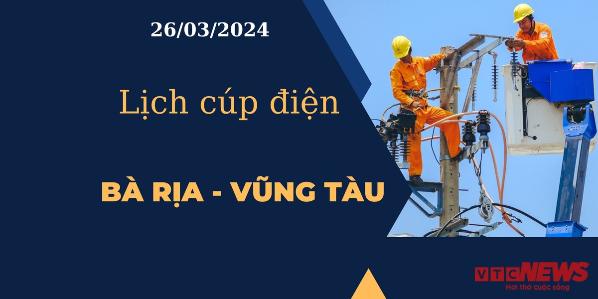 Lịch cúp điện, cắt điện các khu vực tại Bà Rịa - Vũng Tàu ngày 26/03/2024 được cập nhật từ cổng thông tin Điện lực miền Nam.
