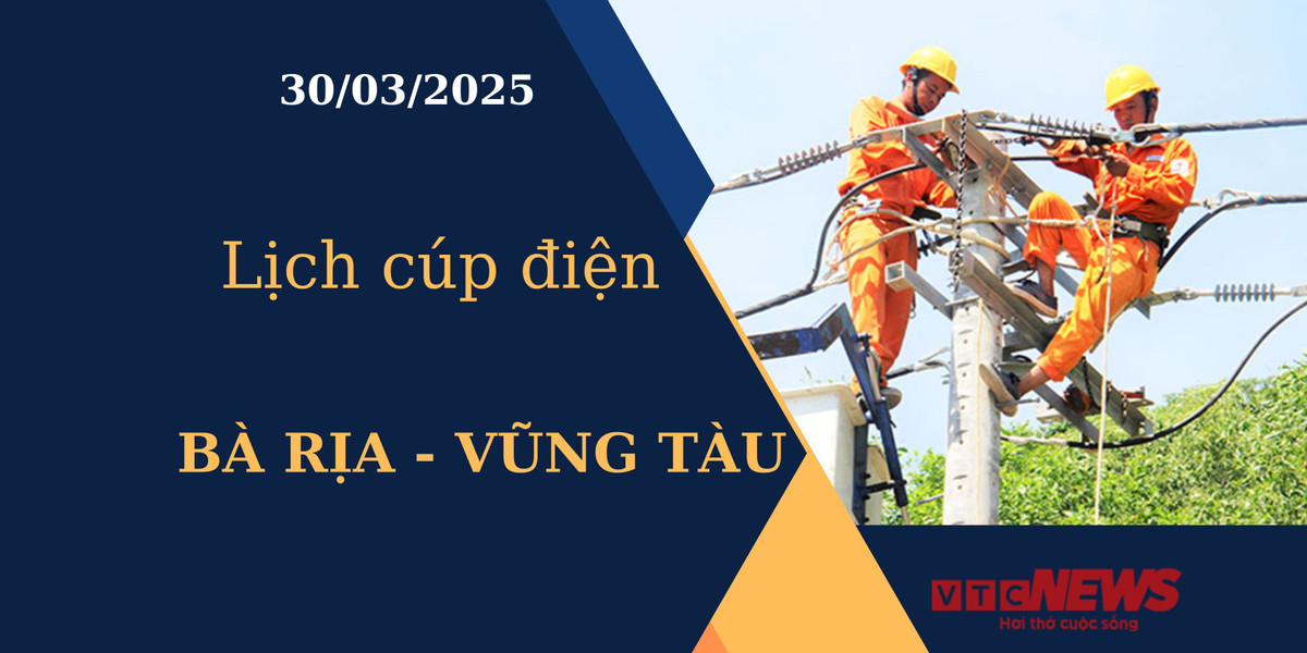 Báo Điện tử VTC News cập nhật mới nhất lịch mất điện, cúp điện các khu vực tại Bà Rịa - Vũng Tàu ngày 30/03/2025 từ website cổng thông tin Điện lực miền Nam.