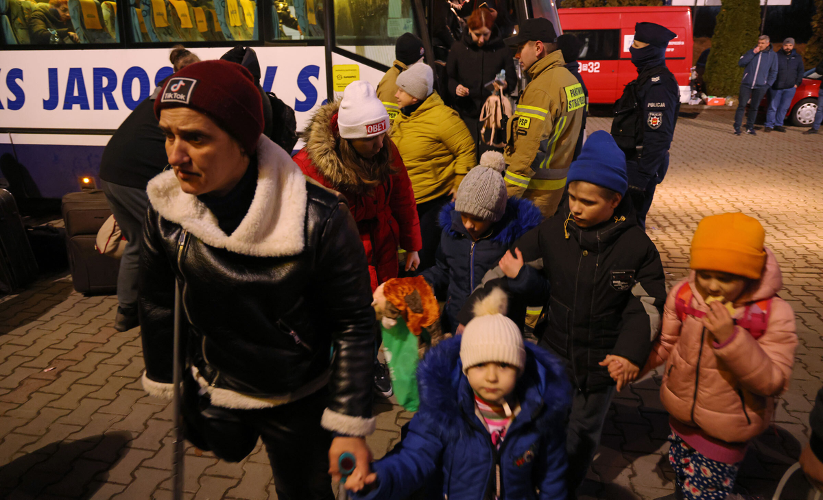 Người tị nạn từ Ukraine đến nơi trú ẩn tạm thời gần Korczowa, Ba Lan. (Ảnh: Sean Gallup/Getty)