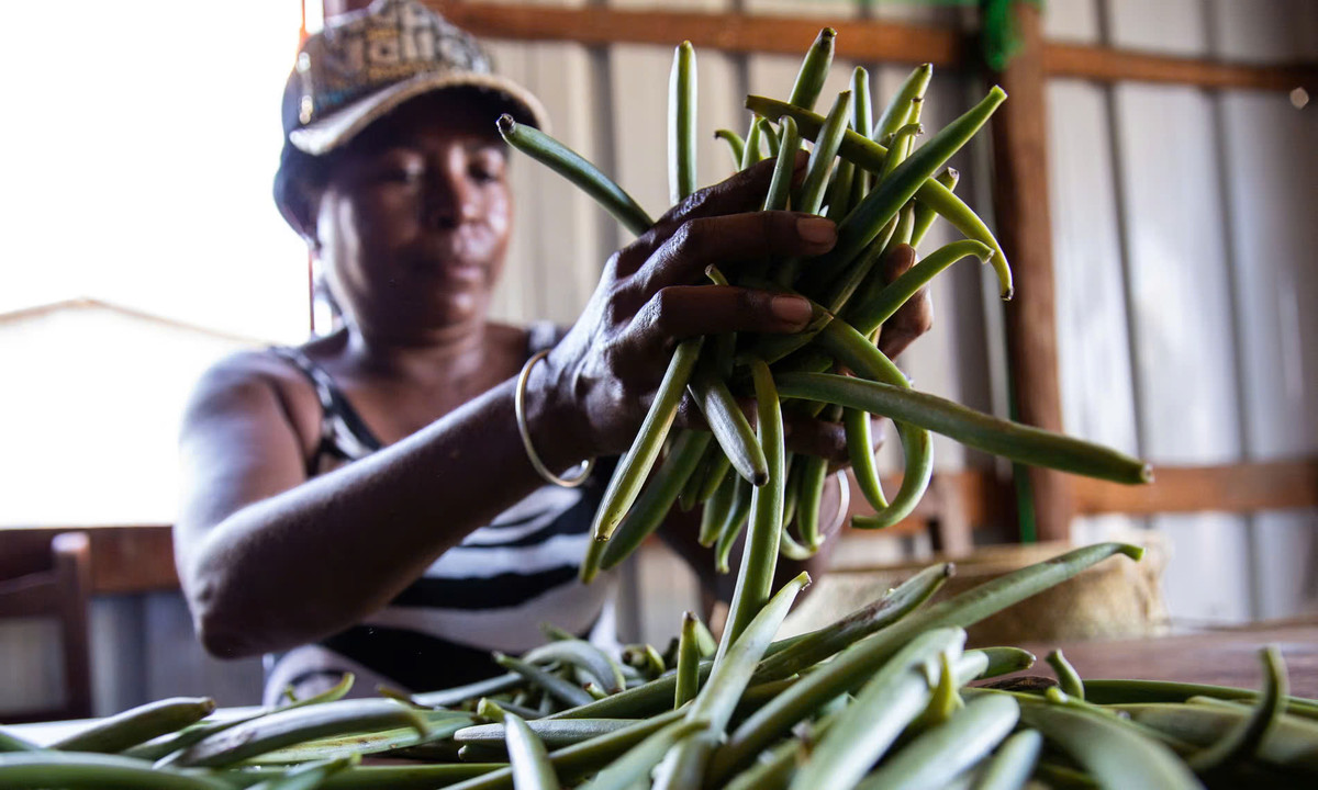 Người nông dân với một bó quả vani xanh tại Madagascar. (Ảnh: Reuters)