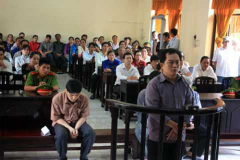 | Nguyễn Đông Hải và các đồng phạm tại tòa. |