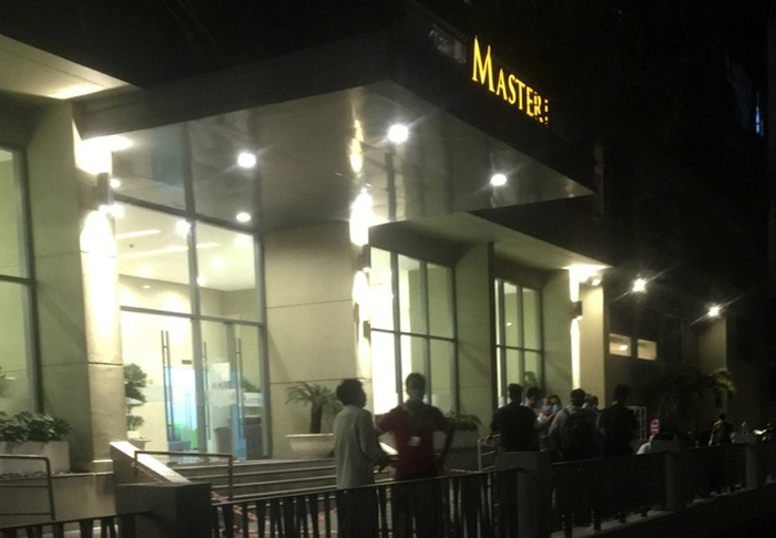 Khu B tòa nhà T4 của chung cư Masteri Thảo Điền được phong tỏa đêm 21/3. Ảnh: (Trương Khởi)